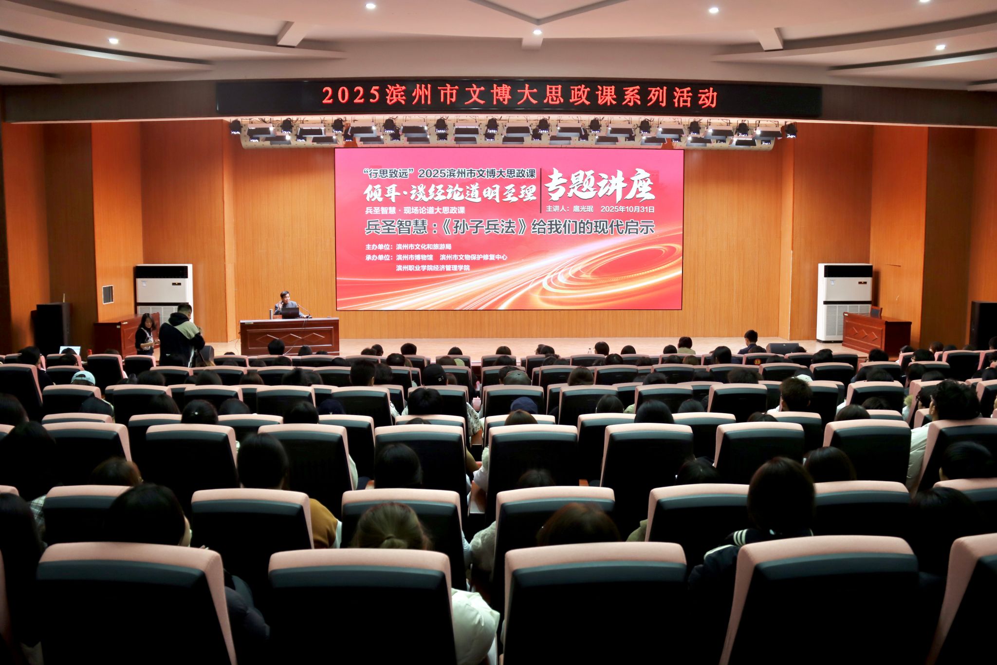 10月31日晚,“行思致远”2025滨州市文博大思政课系列活动之“兵圣智慧”大思政课在世界足球官网顺利落幕。本次活动由滨州市文化和旅游局主办,世界足球官网与滨州市博物馆联合承办,滨州市博物馆馆长王志伟、公司党总支书记、经理出席活动,学院600余名师生齐聚一堂,共同探寻孙子文化的深厚底蕴,汲取文化传承的思想力量。